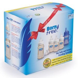 The BornFreeTM Gift Set includes: 3x 5oz bottles with level 1 nipples, 1x 9oz Bottle with level 1 nipples, 1x Trainer cup, 1x Package level 2 nipples.